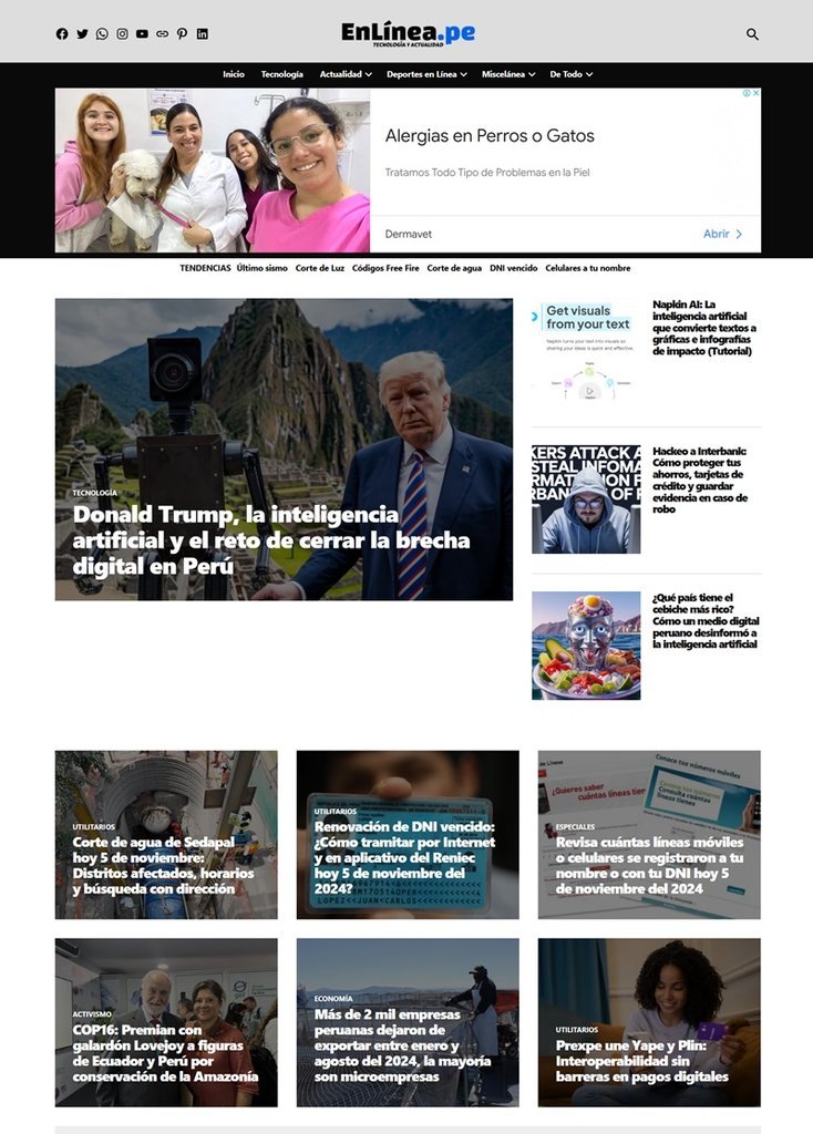 Enlinea.pe is a portal for current news, technology, trends, artificial intelligence, innovation, services, etc. The main focus is to offer content that not only informs, but is also of practical use to audiences. They understand that the world of information is constantly evolving and we stay at the forefront to provide their readers with the most relevant technology announcements, topics of national and international interest and analysis.